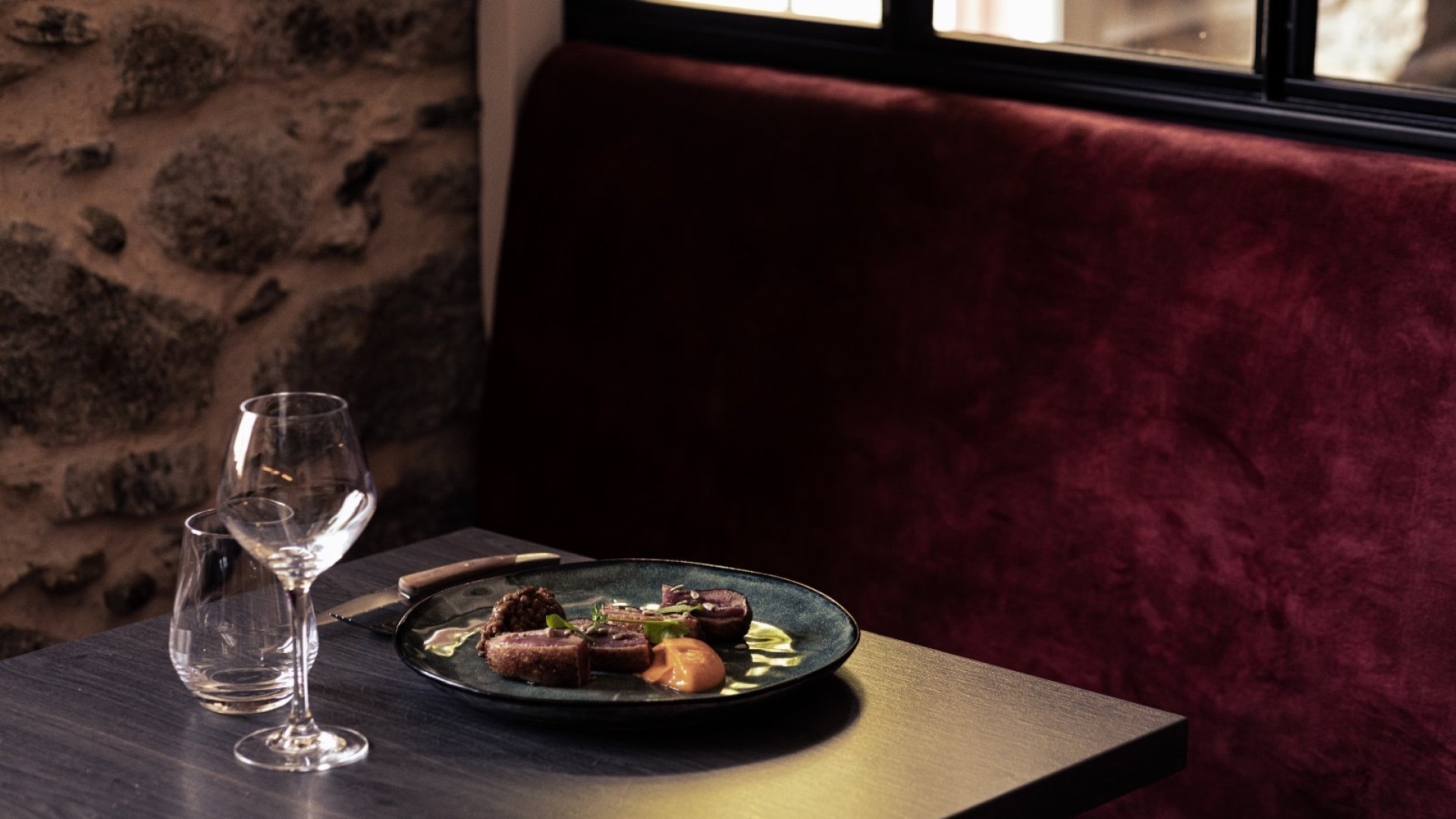 Découvrez la cuisine des chefs Aurélie & Paul Rami, à l'heure du déjeuner ou du dîner autour du menu PLAISIR. Restaurant Michelin 2025 BIB GOURMAND